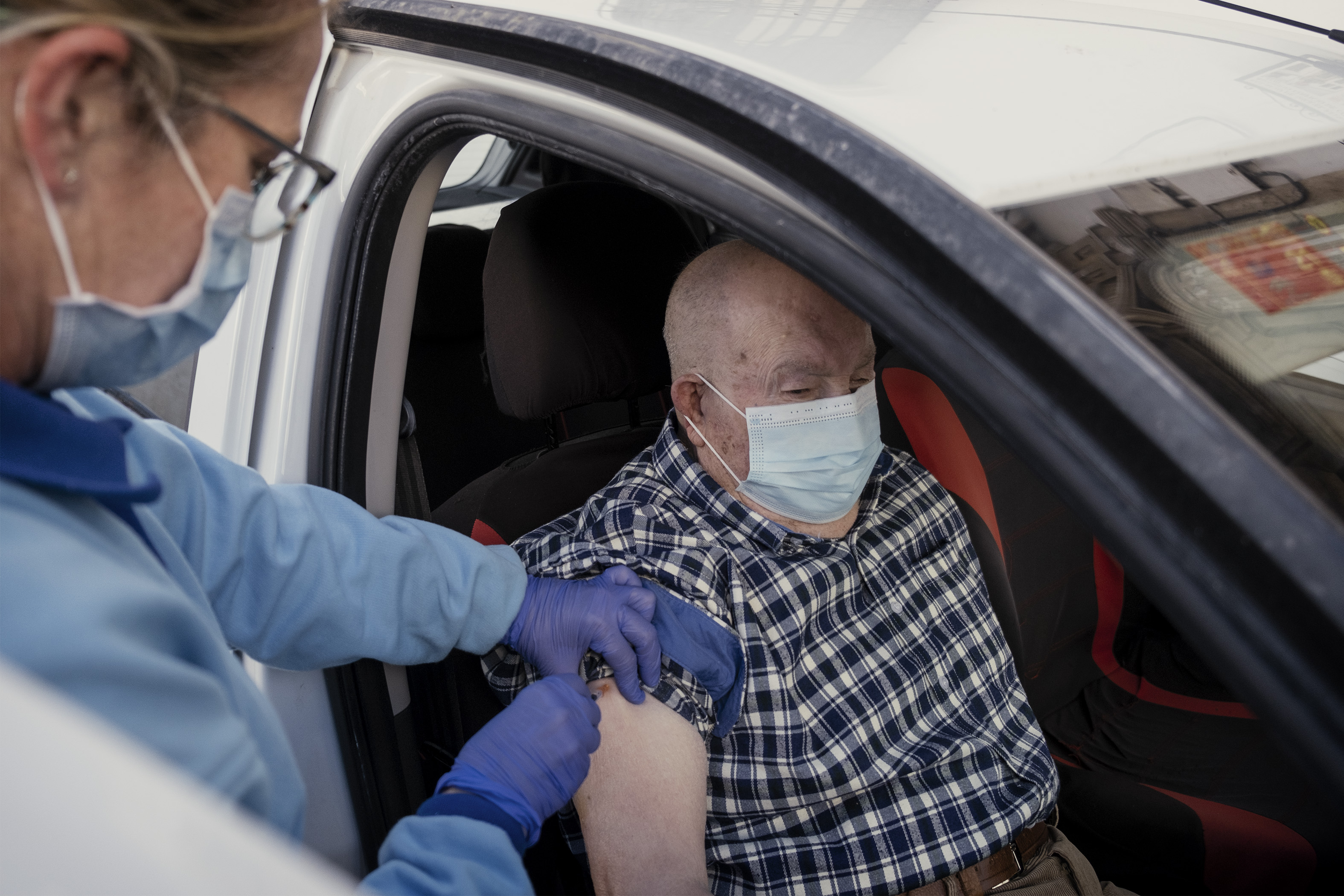 Por sus problemas de movilidad, Rafael también se vacunó en el coche. Dolores lo hizo en el centro, acompañada de su nieta. “Todo muy rápido y muy bien, a ver si con esto y quedándonos todos en casa empezamos a matar al bicho”, cuenta. En su casa ya son tres los vacunados. Su cuñada es enfermera y ya está inmunizada. “La pobre ha tenido mucho cuidado con mis padres en casa. Mi padre, por su situación, no ha salido a la calle para no tener contacto con nadie y tener que llevarlo a Osuna ha sido una preocupación, aunque todo ha ido muy bien y está muy bien montado”, explica Rafa. “Sin duda, poderse vacunar aquí lo haría todo más fácil”, abunda.