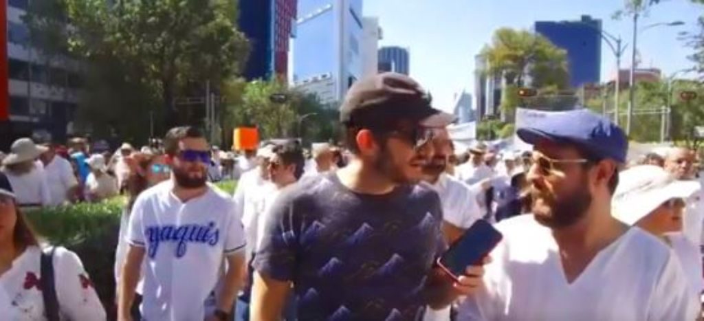 Hoy en Reforma un grupo de manifestantes fifis a los que no les gusta lo que hago me echaron de la marcha mientras intentaba entrevistar a uno de sus asistentes. Así de tolerantes y democráticos estos amiguitos… pic.twitter.com/6iWObFG7ad