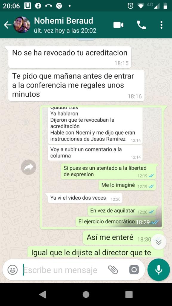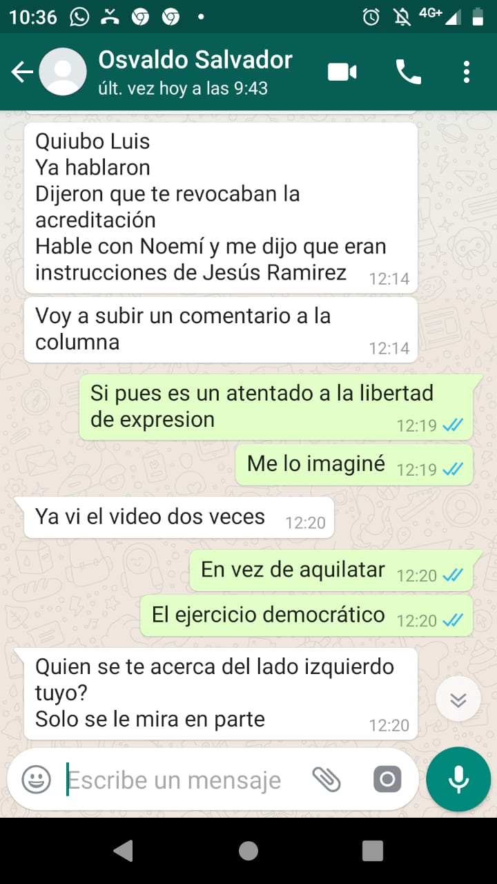 Fue el director de su medio, en Chihuahua, quien le informó a Luis Cardona que le “revocaban la acreditación”, “por instrucciones de Jesús Ramírez”, quien después rechazó que la hayan retirado. El periodista estuvo en la conferencia este viernes.