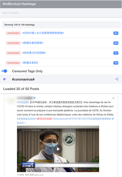 Es como el efecto Streisand en forma de producto. El acto de censura en realidad hace que el contenido sensible se vuelva cada vez más visible. Cuanto más intenta el gobierno chino ocultar información sobre el Dr. Li Wenliang, uno de los primeros denunciantes de coronavirus que fue presionado al silencio por la policía china y luego murió a causa de la enfermedad, más atención recibe. Williams me dice que está emocionado de que WeiBlocked esté “poniendo en práctica la protección contra la censura de la red”.