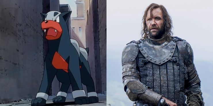 Houndour de la Generación II, que fue uno de los primeros tipos oscuros, tiene uno de los diseños de perros más geniales entre Pokémon. A diferencia de muchos de los otros perros, como Ninetales y los Eevees, Houndour tiene una apariencia mucho menos majestuosa y amigable, lo que lo convierte en el complemento perfecto para Game of ThronesSandor Clegane, apodado “El Sabueso”.