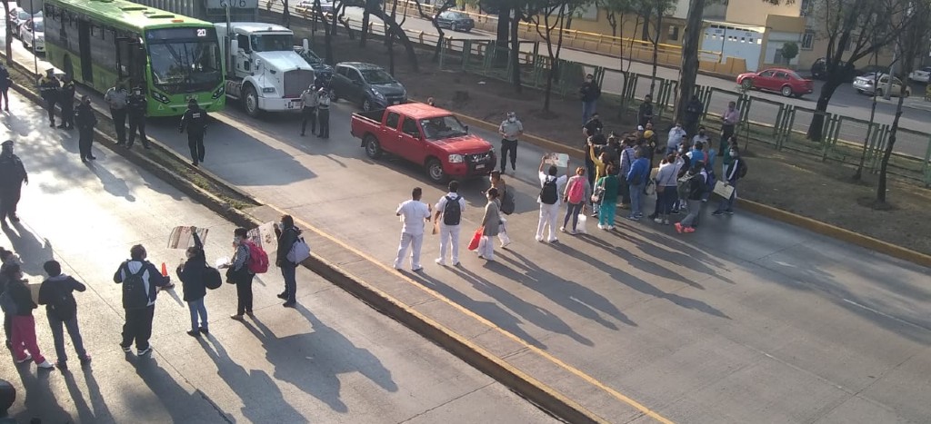 La mañana de este miércoles, personal del departamento de Infectología del Hospital La Raza del IMSS bloqueó ambos carriles de Circuito Interior en protesta por la falta de insumos médico para atender a pacientes contagiados de Covid-19.