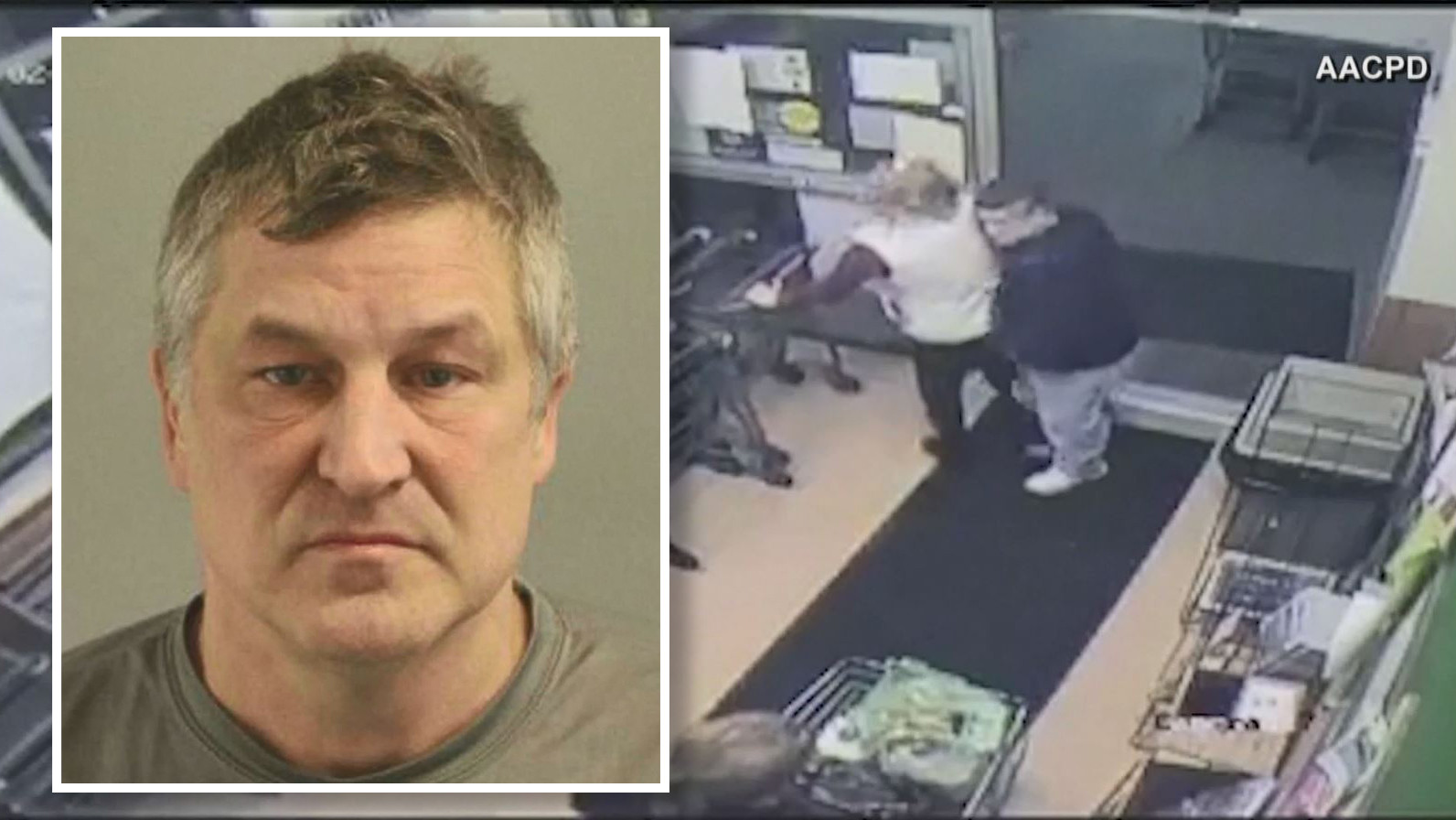 Un video de vigilancia del establecimiento muestra a un hombre siguiendo a una mujer hacia el área de los carritos de compra, y chocando levemente con ella. El sujeto parece tener algo en su mano izquierda. La mujer salta y se toca en un costado. Ambos parecen intercambiar palabras.