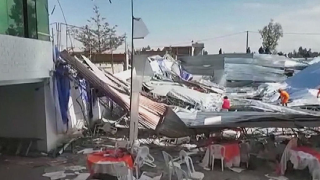La fiesta en honor a San Francisco de Asís se encontraba en uno de sus momentos centrales cuando el techo comenzó a caer y los cientos de participantes intentaron salir del local, según videos mostrados por las televisoras locales.