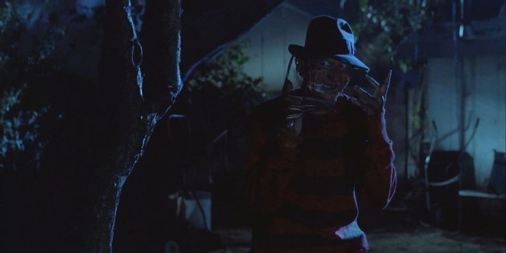 Posiblemente la mejor película del director Wes Craven, la original una pesadilla en la calle Elm vio a Freddy Krueger (Robert Englund) regresar de la tumba en sueños para matar a los hijos restantes de quienes lo quemaron hasta la muerte. Su primera víctima fue Tina Gray, a quien Freddy cortó y arrastró por el techo, incriminando efectivamente a su novio Rod Lane por la muerte de Tina. Rod fue la próxima víctima de Freddy, y Freddy lo colgó con una sábana en la cárcel, haciendo que pareciera un suicidio por culpa. Freddy dejó de intentar esa táctica la próxima vez que mató al novio de Nancy, Glen Lantz (Johnny Depp), arrastrándolo a su cama y convirtiéndolo literalmente en una fuente de sangre. El asesinato final de Freddy en su película debut fue el de la madre de Nancy, Marge Thompson, a quien saltó mientras estaba en llamas, aunque la muerte en general tenía poco sentido.