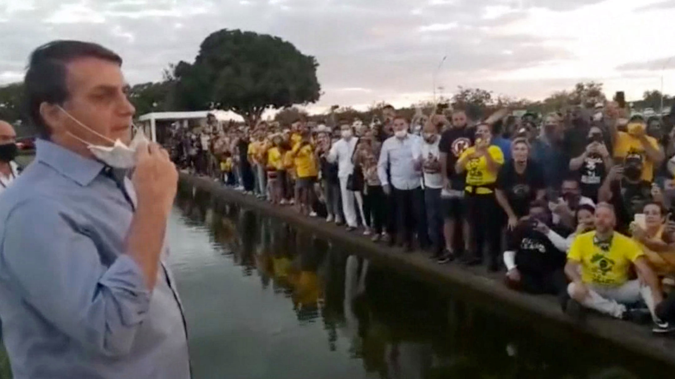 El domingo, cerca de 2,000 seguidores de Bolsonaro convocados por movimientos evangélicos marcharon en la capital Brasilia con 27 cruces, en representación de cada estado del país, para manifestar su solidaridad al mandatario y criticar la gestión al frente de la pandemia del COVID-19 por parte de los gobernadores.