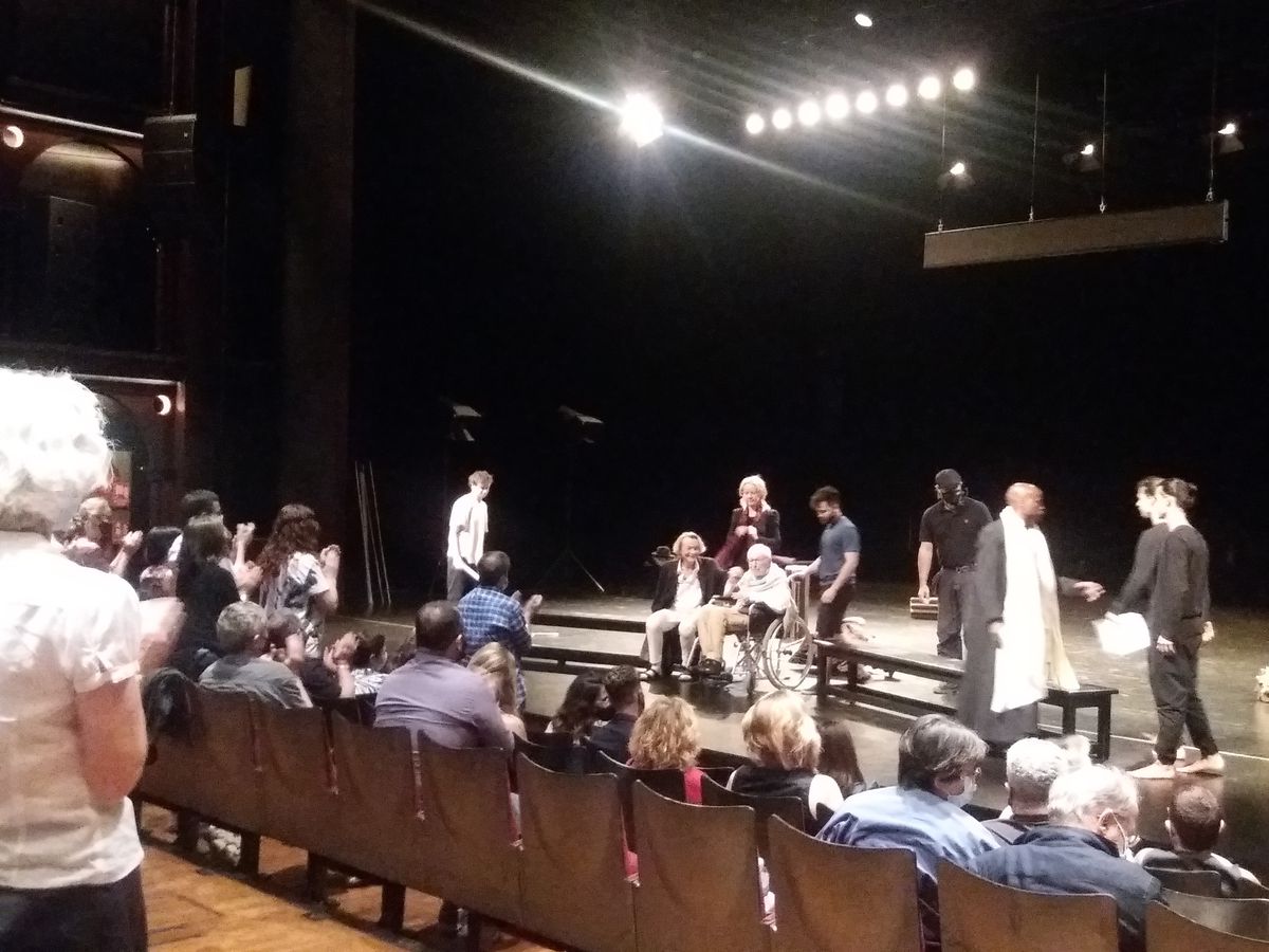 Ha sido algo que ha puesto un nudo en la garganta, imposible imaginar algo más conmovedor. Una especie de testamento lanzado desde el lugar que ha sido la patria de Brook, la escena. El público se ha puesto en pie para aplaudir entusiásticamente la lección del director, veinte minutos de consideraciones sobre el teatro rodeado de los actores del espectáculo.