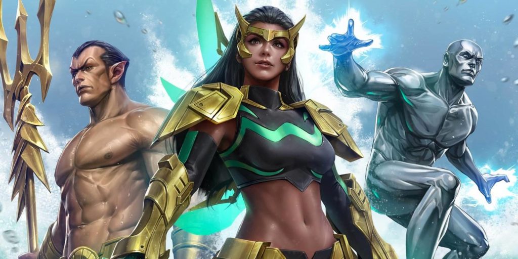 Wave fue diseñado por el escritor de cómics Greg Pak y el artista filipino Leinil Francis Yu. Nacida como Pearl Pangan, el héroe hidrocinético proviene de la isla Mactan en Cebú, Filipinas, y posee espadas largas de agua de doble filo, inspiradas en kampilan (un arma que se originó en Filipinas) junto con una armadura de oro. Este julio, Wave también apareció en el Aero serie de libros, un personaje conocido principalmente por los lectores chinos de cómics; sin embargo, su nueva serie de libros también fue lanzada a lectores ingleses por primera vez.