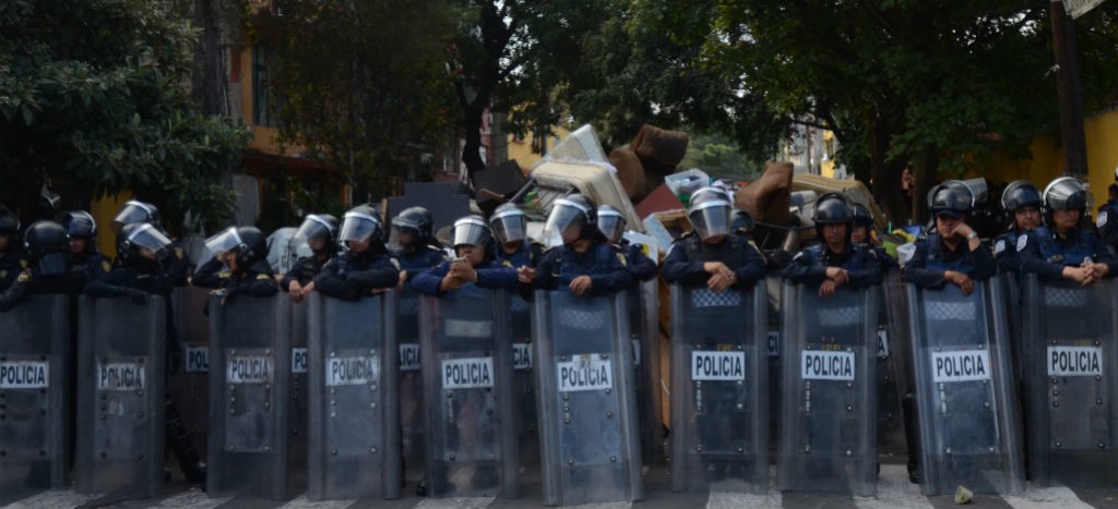 El Protocolo de Actuación Policial en la materia publicado en mayo de 2016 establece que “las funciones de las y los policías exclusivamente será de garantizar la movilidad peatonal, vehicular y la integridad física y patrimonial de las y los residentes y población en general y de las autoridades y personal que participen en el desarrollo de la diligencia, evitando la alteración al orden público y la comisión de ilícitos, observando en todo momento el respeto irrestricto a los derechos humanos”.