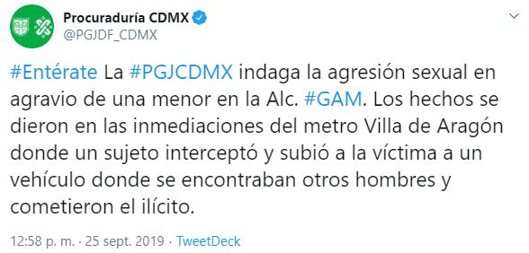 De acuerdo con el expediente, el lunes pasado la mujer fue interceptada por un sujeto cuando subía las escaleras de la estación ubicada en la alcaldía Gustavo A. Madero, quien la obligó a subir a una camioneta color negro con vidrios polarizados donde estaban otros copartícipes, quienes la agredieron sexualmente.