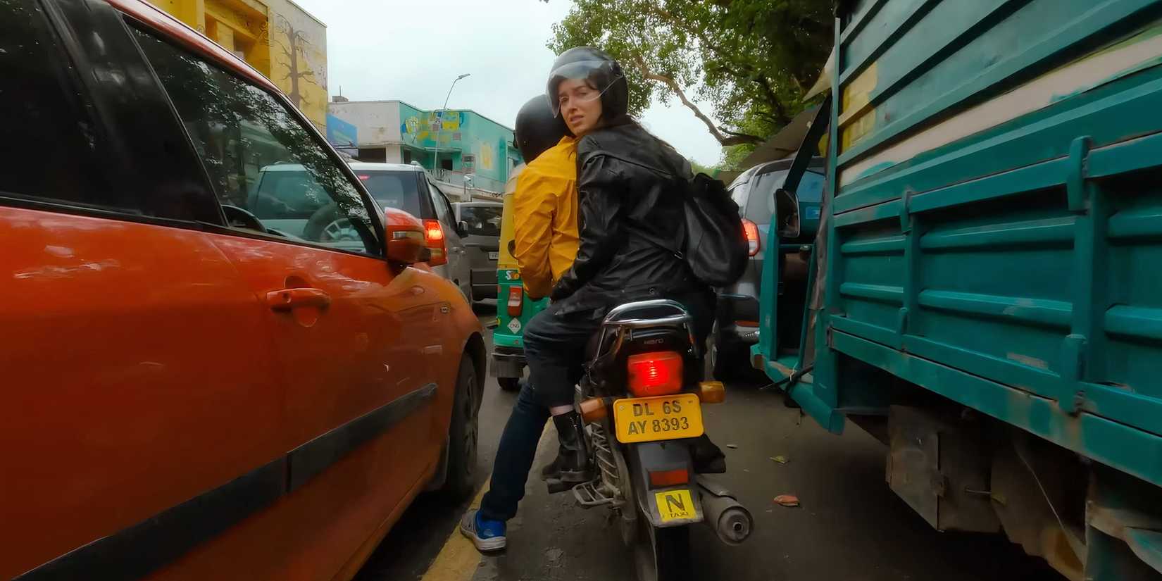 Phoebe Dynevor: Ese fui yo todo el tiempo. Tuvimos un tipo de truco increíble de la India que había hecho muchas películas de Bollywood, y es una gran cosa en la India. Entonces, me sentí muy seguro con él. Pero sí, estábamos en las calles de Delhi con tráfico real y autos reales y tuk tuks reales y todo eso. Entonces, tejer dentro y fuera de esos autos era real, y todo bastante aterrador para mí, así que me alegro de que se presente.