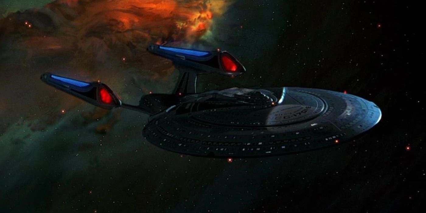 Después de siete temporadas como el barco héroe de Viaje a las estrellas: la próxima generaciónel USS Enterprise-D de clase Galaxy dio el salto a la pantalla grande con Generaciones de Star Trek. Sería una promoción de corta duración, ya que la nave sufrió graves daños en una batalla con las hermanas Klingon Duras. El Enterprise-D terminó derrotando a los klingon, pero sufrió graves daños en la pelea. La sección de propulsión fue destruida por una brecha en el núcleo warp, mientras que la sección del platillo se estrelló en el planeta sin desarrollar Veridian III.