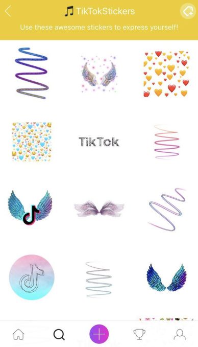 Captura de pantalla: calcomanías relacionadas con TikTok de la biblioteca de PicsArt
