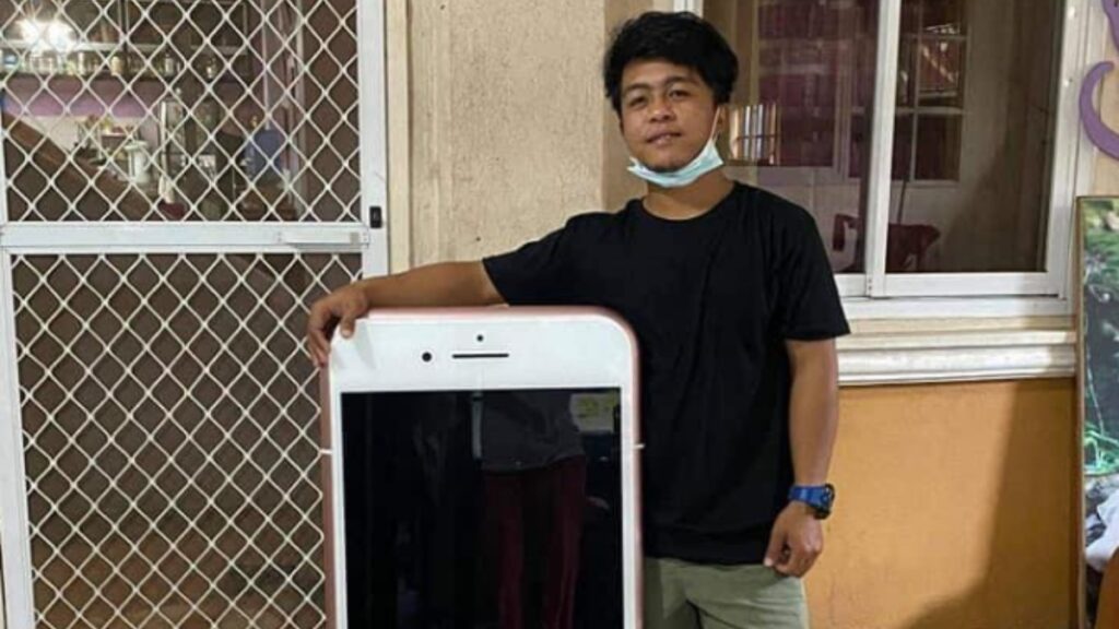 Cuando abrió el paquete, el teléfono que esperaba no estaba. Por el contrario observó que le había llegado un iPhone de casi su tamaño, por lo que quiso compartir su experiencia con una publicación donde se podía leer: «Por eso el envío era tan caro».