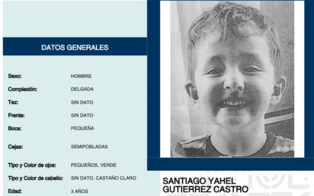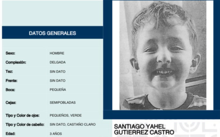 Santiago Yahel Gutiérrez Castro, de apenas 3 años, es buscado desde el 16 de julio, por lo que su familia hace un llamado a la comunidad para ayudar a localizarlo.