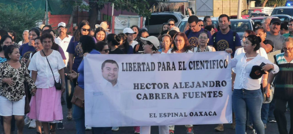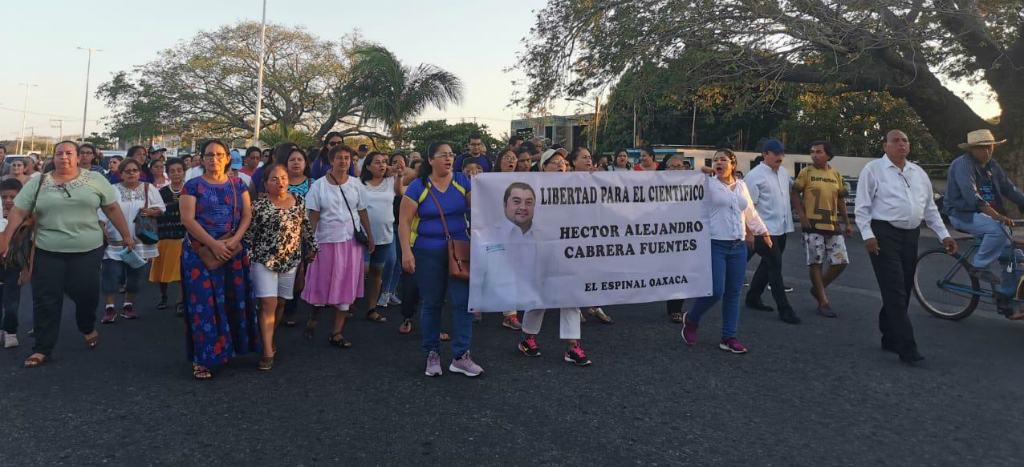 El Espinal, Oax.- Amigos, familiares y pobladores de la comunidad zapoteca de El Espinal, Oaxaca, salieron a las calles para pedir la liberación del científico oaxaqueño, Héctor Alejandro Cabrera Fuentes, detenido el domingo 16 de febrero en Estados Unidos y acusado de espiar para Rusia.