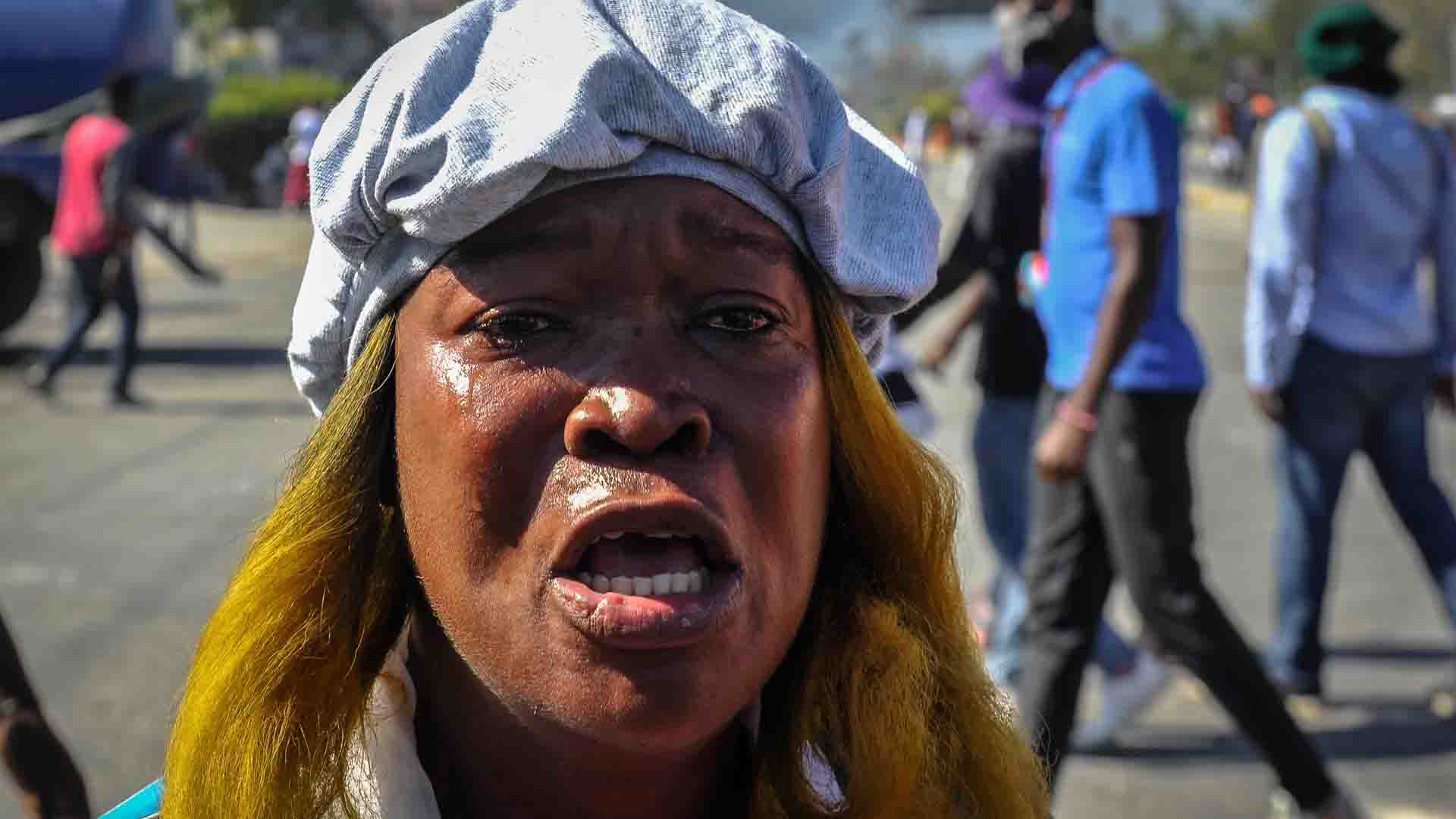 Una mujer que no se identificó lloraba en medio de la marcha, gritando que 500 gourdes al día no es dinero suficiente para pagar su propia alimentación.