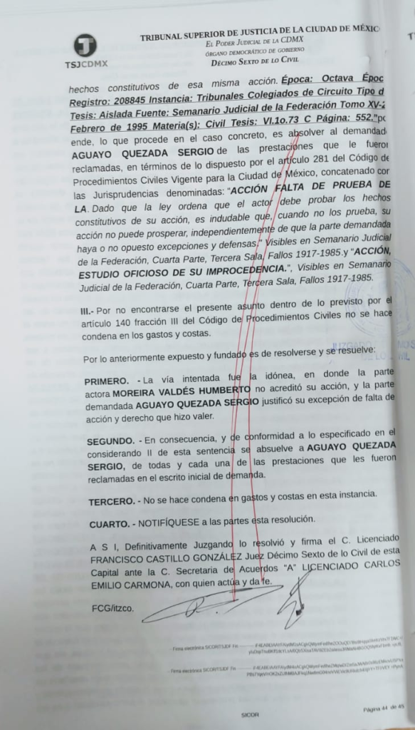 Moreira vs Sergio Aguayo SENTENCIA de 1ra Instancia by Aristegui Noticias on Scribd