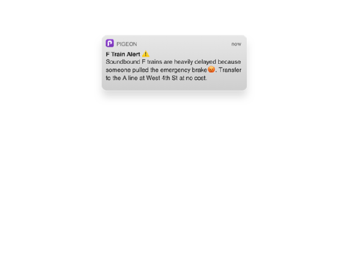 Desde entonces, Pigeon ha ayudado a sus primeros usuarios en cientos de miles de viajes de tránsito cada mes, dice la compañía. También está lanzando un informe de NYC Subway Insights que detalla algunos de esos aprendizajes, como qué líneas tuvieron la mayor cantidad de demoras en las horas pico o la mayoría de las multitudes, qué estación fue la más calurosa en el verano y más.