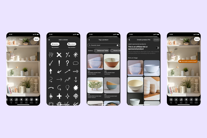 Estos pines son algo así como la versión de Pinterest de TikTok, mezclados con Stories: ofrecen una forma para que los creadores produzcan contenido que combine música, videos y otros elementos interactivos. Los videos en Idea Pins pueden durar hasta 60 segundos por página, con hasta 20 páginas en total por pin. Los creadores también pueden agregar otras funciones a sus pines, como pegatinas o música, y etiquetar a otros creadores con su @nombre de usuario.