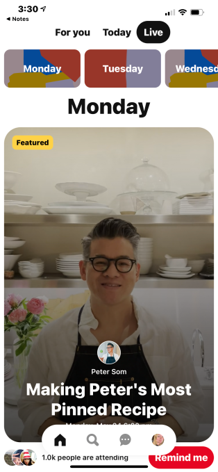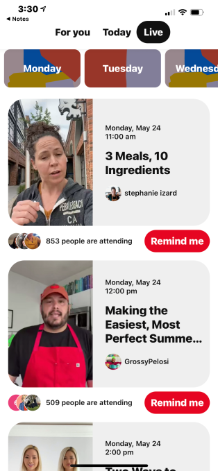 El auge de la economía de los creadores y una demanda de eventos virtuales impulsada por la pandemia llevaron a Pinterest a explorar la idea de la transmisión en vivo. El otoño pasado, comenzó a probar una función de “comunidades de clases” que permitía a los usuarios inscribirse en las clases de Zoom a través de Pinterest, mientras que los creadores usaban los tableros de Pinterest para organizar materiales, notas y otros recursos. Estas comunidades también incluyeron una opción de chat grupal y funciones de compra.