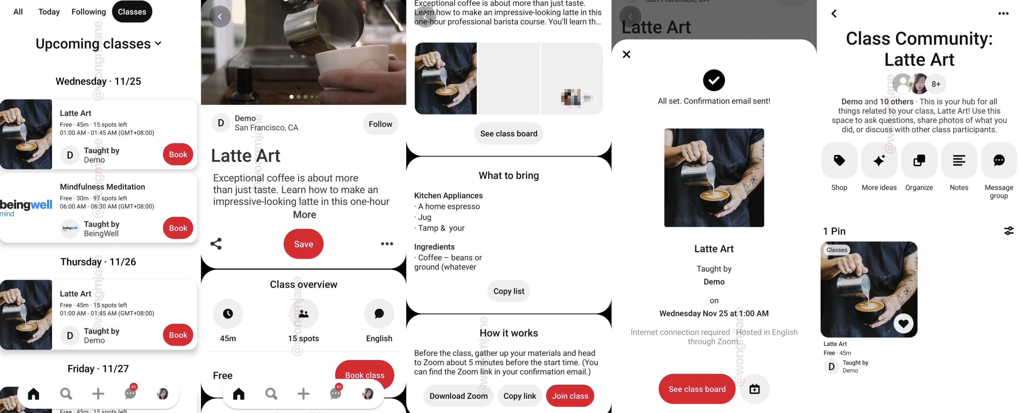Pinterest se está metiendo en eventos en línea. Se ha visto a la compañía probando una nueva función que permite a los usuarios inscribirse en las clases de Zoom a través de Pinterest, mientras que los creadores usan los tableros de clases de Pinterest para organizar materiales de clase, notas y otros recursos, o incluso conectarse con los asistentes a través de una opción de chat grupal. La compañía confirmó que la prueba de las clases en línea es un experimento que ahora está en desarrollo, pero no ofrecerá más detalles sobre sus planes.