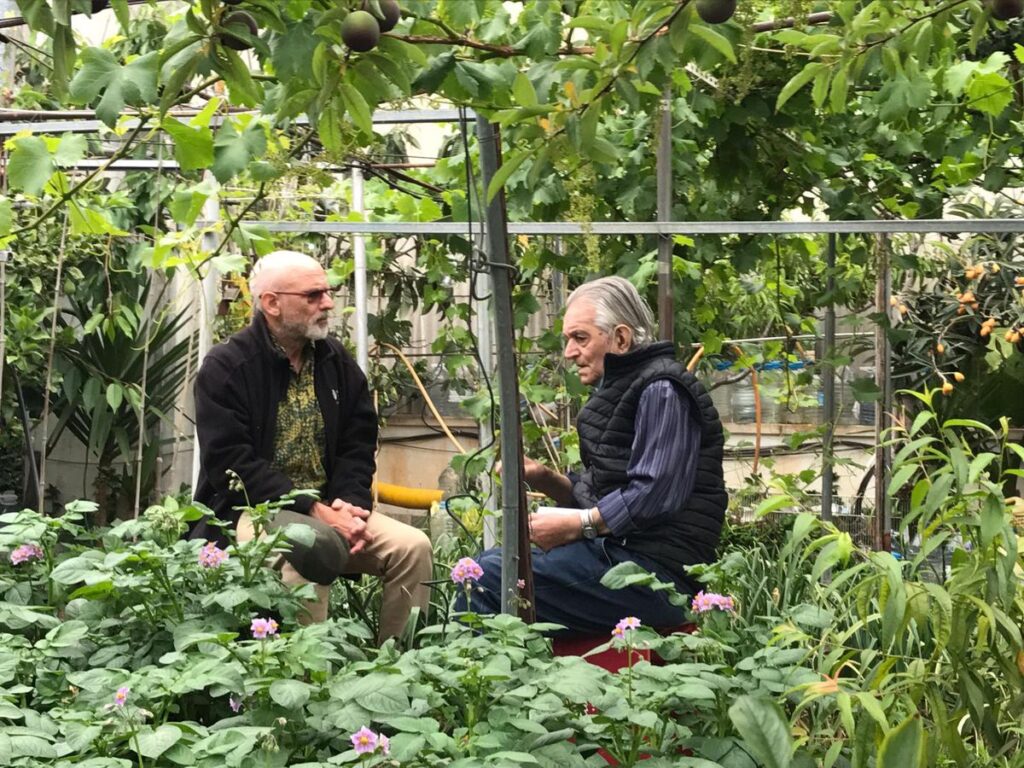 Carulla lleva tiempo observando el comportamiento de las raíces de los árboles en su jardín comestible. Asegura que se mueven en busca de alimento por el interior de los pasillos que él distribuyó entre zona y zona de cultivo. Así es como la higuera o el níspero acceden al alimento que tienen al otro lado de la terraza, a través de sus raíces en el subsuelo. Lo demás lo hace la empatía que tanto Joan como Robert tienen con el mundo vegetal. “Las plantas, como las personas, emiten vibraciones”, dice el primero, “Los humanos a menudo emitimos vibraciones negativas pero las plantas son tan nobles que solo dan positivas. Las quiero, como sentimiento profundo, de tú a tú, y ellas me dan lo mejor de su fruto. Debemos nuestra vida al reino vegetal. ¿Qué mejor práctica de la permacultura que esta puede existir?”