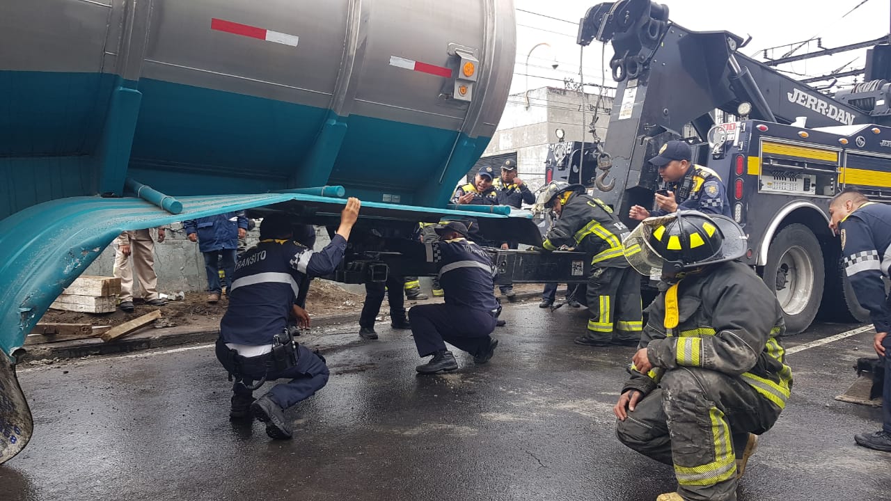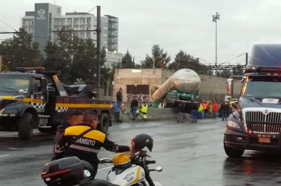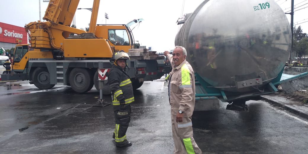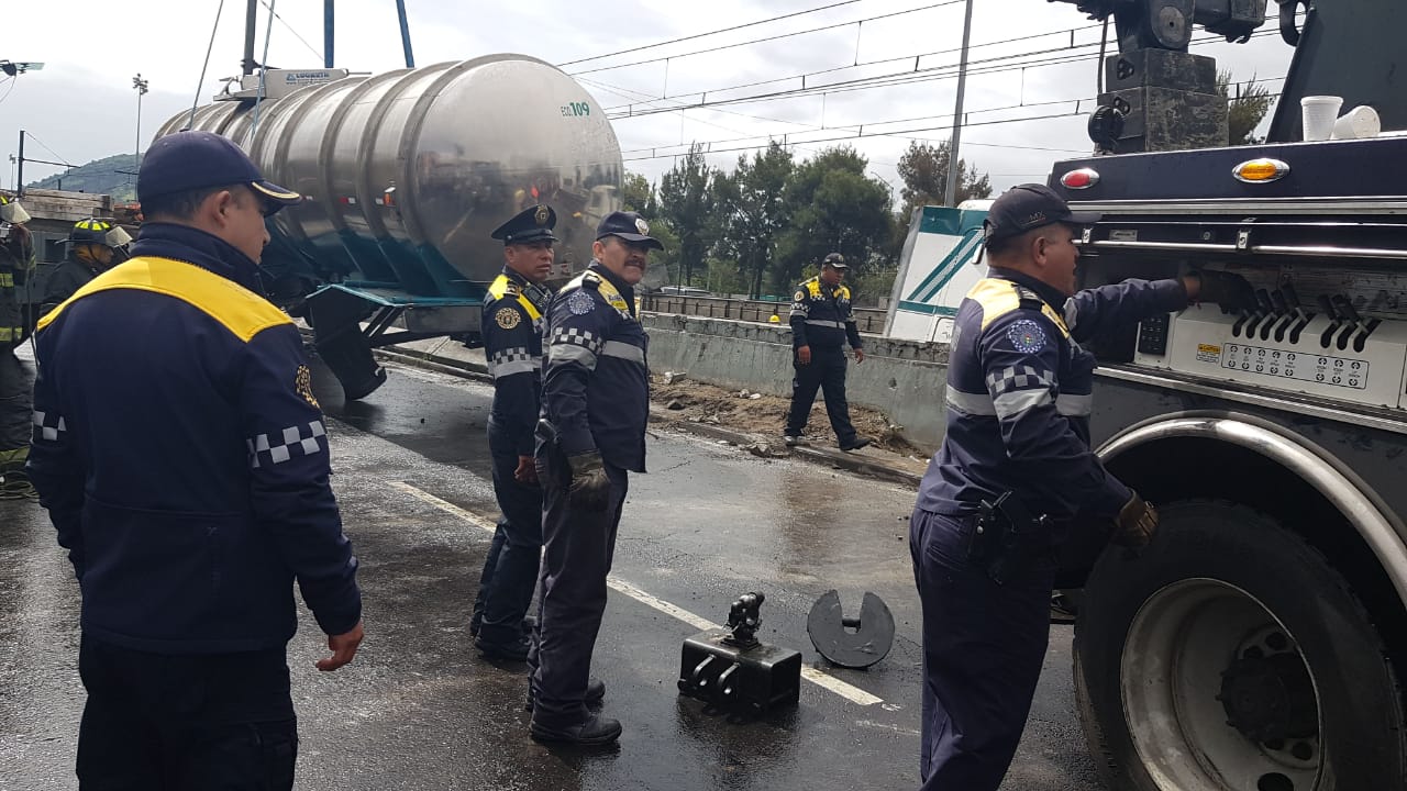 Fue hasta el mediodía cuando socorristas del Escuadrón de Rescate y Urgencias Médicas (ERUM), elementos del Cuadrante del sector Oasis, de la Policía Auxiliar (PA) y personal de la Subsecretaría de Control de Tránsito, de la Secretaría de Seguridad Ciudadana (SSC) de la capital, retiraron la pipa.