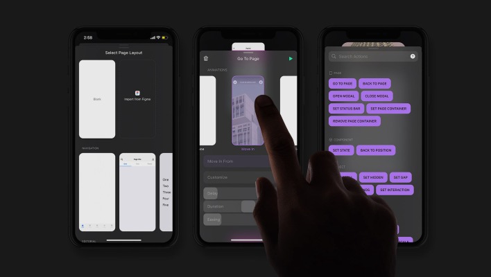 Los usuarios pueden optar por crear desde cero o importar diseños desde herramientas, como Figma, y usar la Biblioteca de reproducción para componentes comunes de la interfaz de usuario como botones, tarjetas y reproductores de video o diseños de página para algo rápido y personalizable para crear páginas completamente funcionales. También hay funciones nativas de iOS como mapas en vivo, realidad aumentada y funcionalidad de cámara.