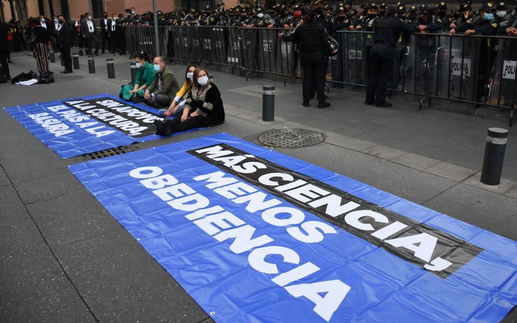 Un fuerte operativo de seguridad se montó alrededor del inmueble, ubicado en el Centro Histórico de la Ciudad de México, ante la presencia de manifestantes y grupos opuestos a la desaparición de los fideicomisos.