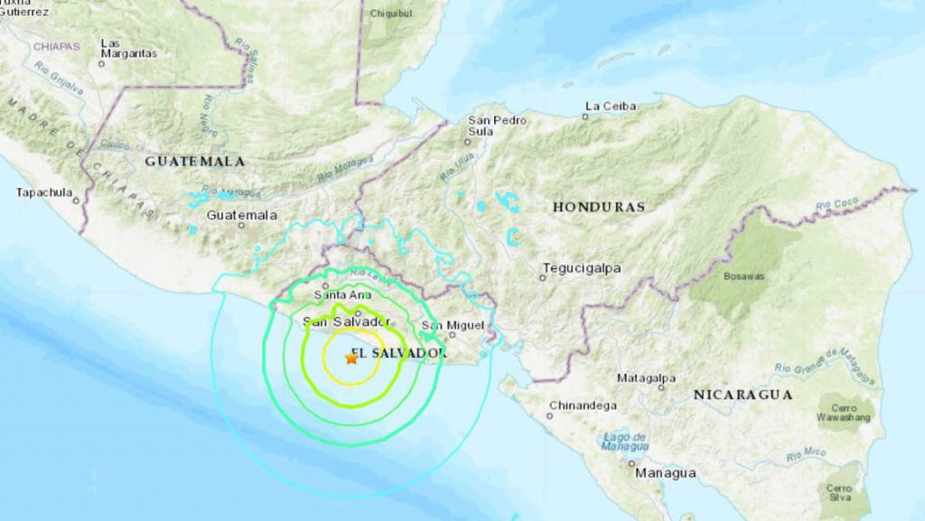 El temblor se registró a las 3 a.m. hora local, tuvo una profundidad focal de 30 millas y su epicentro se situó frente a la costa del departamento de La Libertad, 41 millas al sur de la playa Mizata, según lo informó el Ministerio de Medio Ambiente.