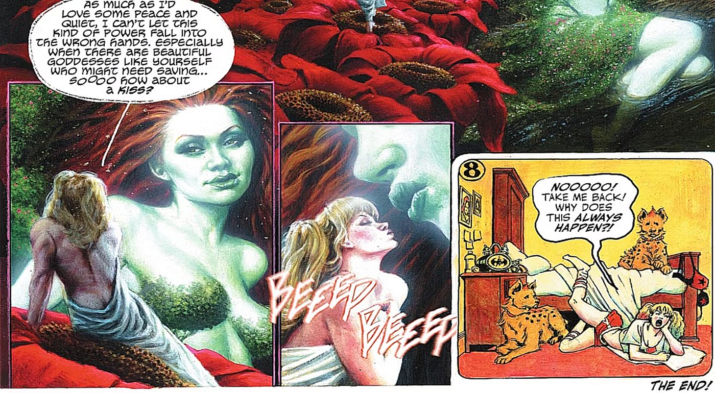 Poison Ivy quiere salvar la naturaleza de las tendencias destructivas de los humanos. Ha dedicado su vida a salvar la vida natural de las fuerzas perjudiciales de la sociedad industrial; esto la ha llevado por un camino de crecimiento significativo, como personaje y como parte compleja del ecosistema de superhéroes de DC. Mientras que DC está jugando actualmente con la idea de Hiedra venenosa Siendo un héroe o un antihéroe, su futuro como deidad de DC sería su punto final natural, algo que “Harley la Bárbara” muestra en broma, aunque termina justo antes de que la protagonista pueda robarle un beso a su diosa.