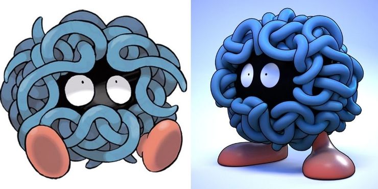 Tangela, el “Pokémon Vid” de la generación 1 de OG, es un tipo de hierba que proporciona al portador de la habilidad tanto Clorofila como Hoja Guardia. El nombre proviene de la palabra “enredo” y definitivamente es apropiado, ya que este Pokémon tiene una cara negra con ojos grandes rodeados de enredos azules.