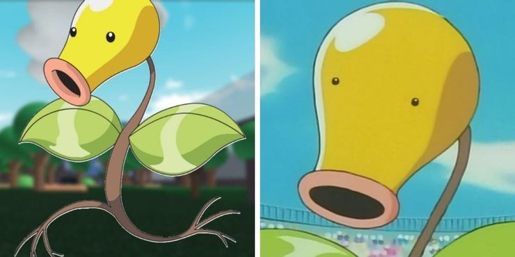 Su parte inferior se divide en dos, dejando lo que parecen piernas, con dos hojas para los brazos y una cabeza en forma de campana. Finalmente, tiene una cara que se asemeja a la de un humano, compuesta de colores verde pálido, rosa, amarillo y marrón. El nombre de este Pokémon proviene de las palabras “campana” y “brote”. De Bellsprout viene el igualmente lindo Weepinbell y Victreebel.