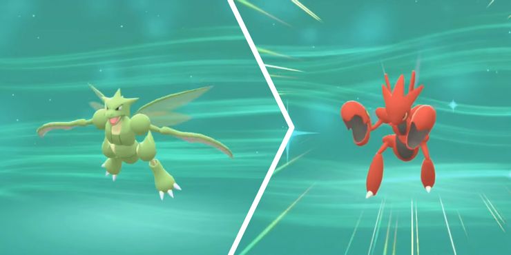 Scyther es una exclusiva de Diamante Brillante en Pokémon Diamante Brillante y Perla Brillante que puede evolucionar a Scizor a través del comercio.