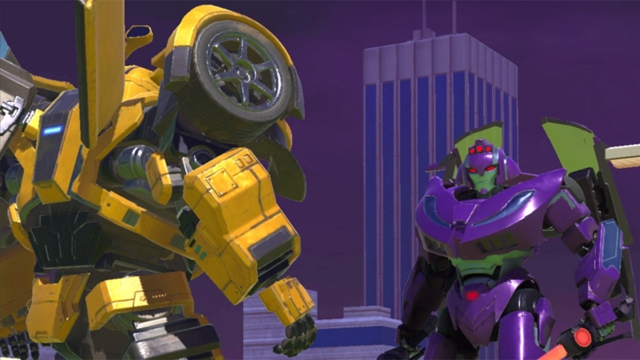 Una captura de pantalla de Transformadores: Heavy Metal muestra a Bumblebee enfrentándose a varios Decepticons, incluido Starscream, sobre lo que parece ser un área similar a un centro Pokemon Go-Gimnasia escolar. Una captura de pantalla separada muestra a Bumblebee luchando contra un jefe Decepticon. Puede ver ambas capturas de pantalla a continuación: