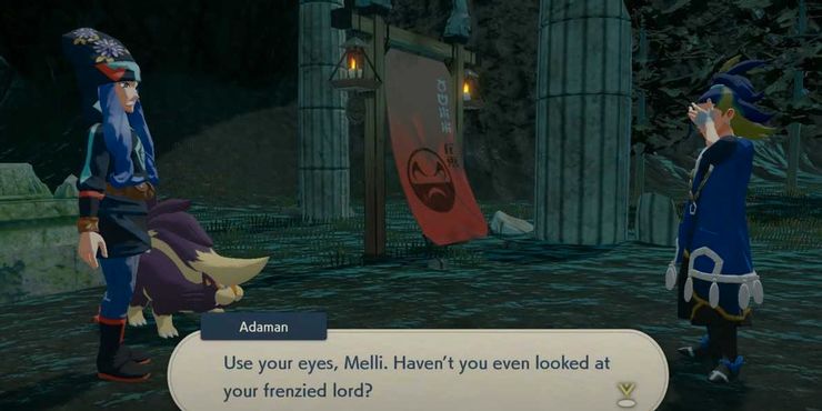 El Guardián de Electrode, Melli, se interpone activamente en el camino para detener el Frenesí del Noble, lo que obliga al jugador a luchar contra él repetidamente. Racionaliza esto con una retórica vacía de que el Frenesí podría ser un mensaje de los dioses y que no tienen derecho a intervenir. Sin embargo, los Pokémon nobles claramente sufren los efectos de las distorsiones del espacio-tiempo, un hecho que todos los demás guardianes entendieron intuitivamente. La falta de empatía de Melli por su propio Noble asignado es más que un poco inquietante.