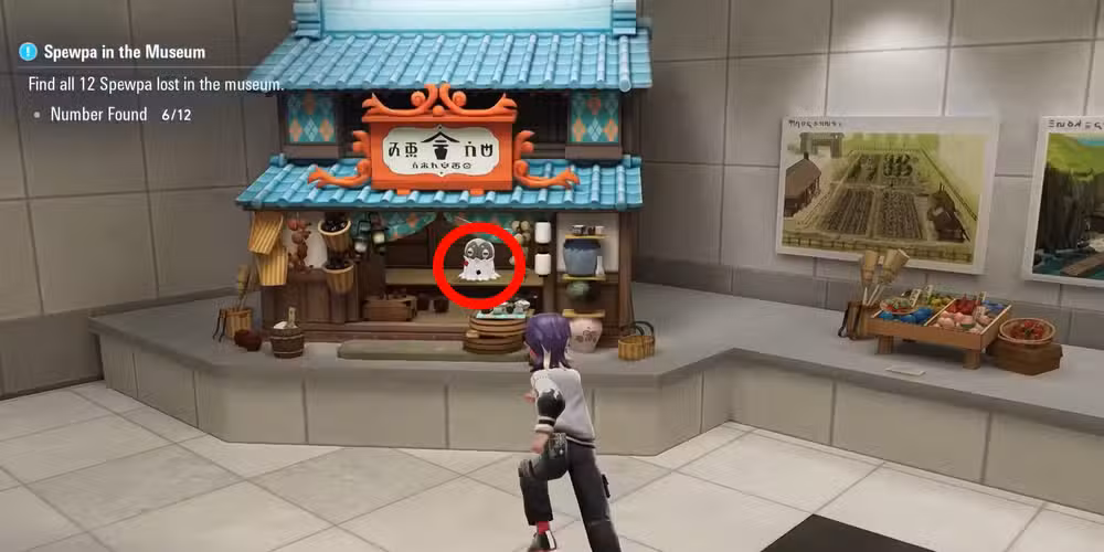Al otro lado de la entrada a la otra galería del segundo piso, frente a donde encontró el banco de artesanía Spewpa, encuentre un modelo de un edificio con un techo azul brillante.