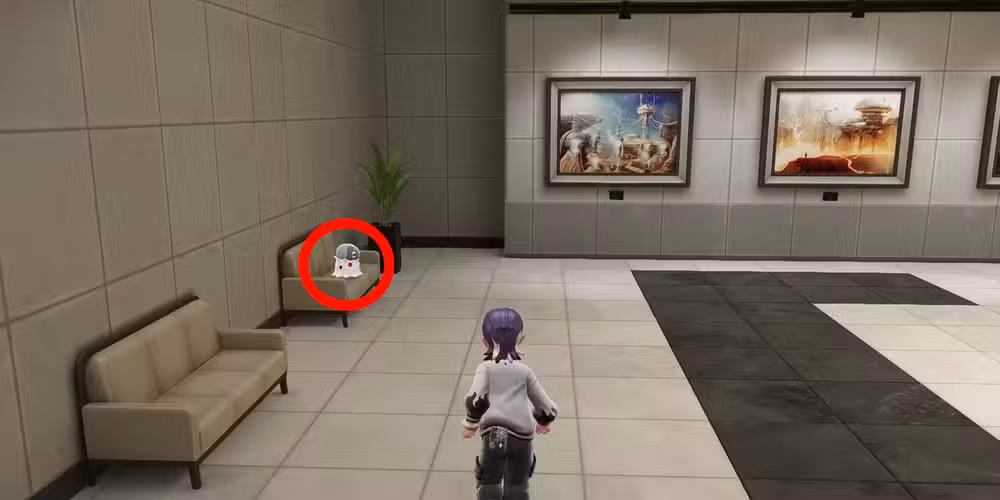 Tan pronto como pases la entrada, gira a la izquierda y verás un Spewpa. sentado en el otro de dos bancosjunto a una planta en maceta en la esquina de la habitación.