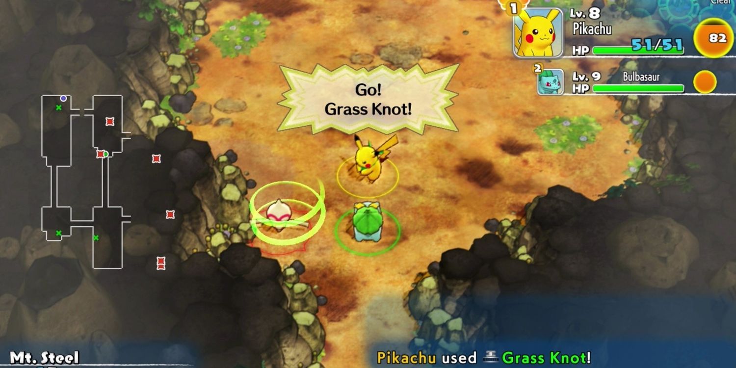 El problema aquí es que Pokémon Mundo Misterioso: Equipo de Rescate DX No explica estas condiciones muy claramente. Comprender que Brick Break no ataca en las esquinas es un descubrimiento que, en última instancia, se descubrirá mediante prueba y error en lugar de una explicación en el juego. Otros movimientos como Graveler’s Magnitude están innecesariamente sobrecargados y pueden causar daño a una habitación entera sin importar qué tan lejos esté el Pokémon. Esto significa que los equipos sin ataques a distancia efectivos pueden ser eliminados con solo unos pocos golpes por parte de ciertos enemigos.