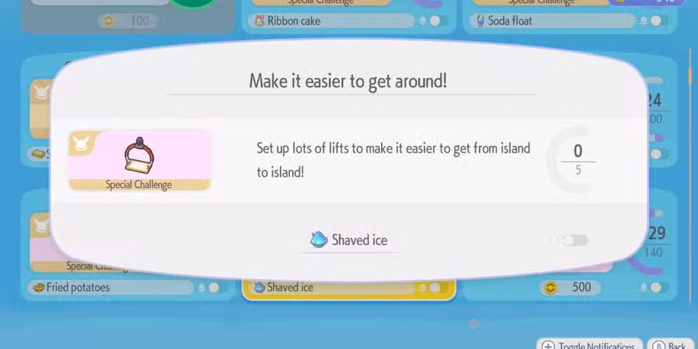 Cada desafío se explica por sí mismo, como tener 50 vegetales creciendo o 12 tipos diferentes de flores. Requieren algo de esfuerzo, especialmente el Otros más avanzados, como colocar cinco juegos de ascensores en Palette Town.. Eso ni siquiera podrás lograrlo hasta que hayas trabajado en el área final del juego, Sparkling Skylands. Sin embargo, esto también hace que sea aún más satisfactorio cuando finalmente veas ese esquivo Pokémon que tanto deseabas que apareciera.