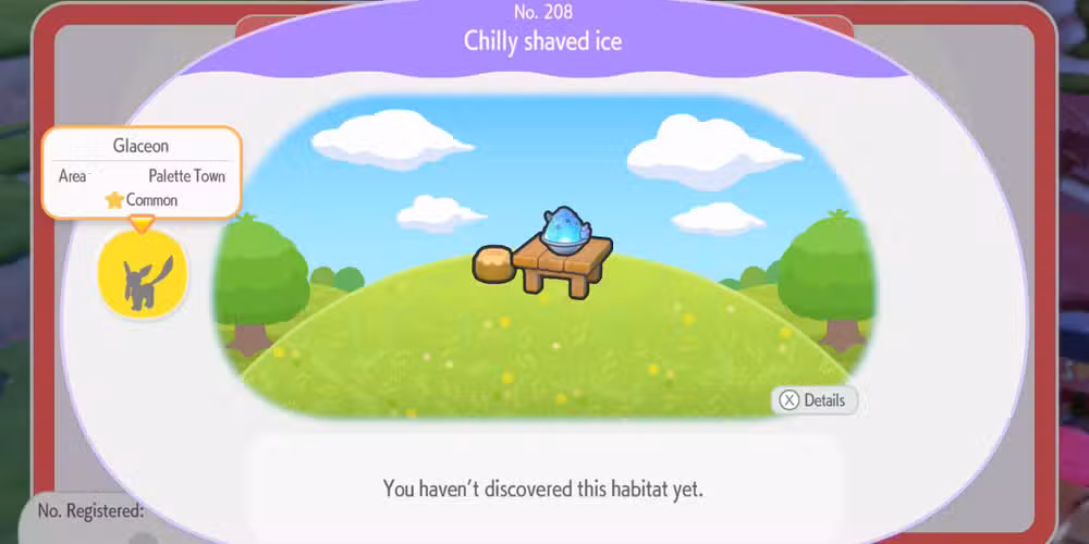 Si miras el Habitat Dex, puedes ver algunas de las Hábitats en el fondo que requieren alimentos únicos como pizza y galletas. Al principio, creí que esto sería parte de que Ditto aprendiera a cocinar, pero no. Estos alimentos sólo se obtienen a través de los desafíos especiales de Palette Town en Amapola.