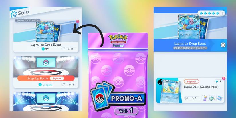 A pesar de Bolsillo de JCC Pokémon acaba de lanzarse para los jugadores hace una semana, ya se están llevando a cabo varios eventos, incluido el evento de entrega de Lapras EX. El evento de lanzamiento de Lapras EX permite a los jugadores recolectar cinco nuevas cartas promocionalesincluido Lapras EX, que se puede agregar a mazos personalizados para batallas en el juego.