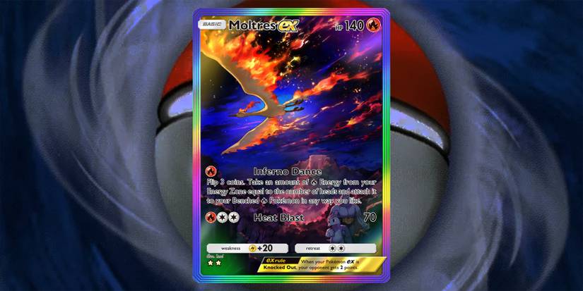 Cuando está activo, Moltres tiene un movimiento de energía, Inferno Dance, que te permite girar tres monedas y agregar una carta de energía a un Pokémon de tu elección por cada cabeza. Esta estrategia te permitirá construir rápidamente un Charizard con Crimson Storm.