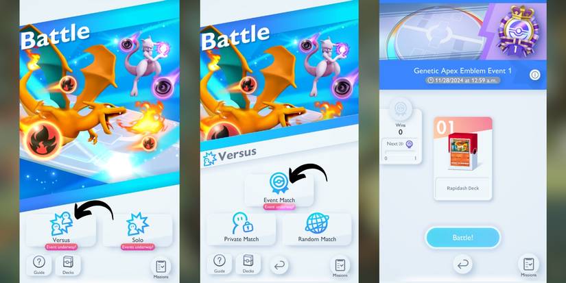Además de coleccionar, las batallas son uno de los principales objetivos de bolsillo de JCC Pokémon, y muchos jugadores ya han comenzado a crear cuidadosamente mazos imbatibles para usar en el sistema de batalla en línea. Los jugadores pueden participar en batallas de eventos PvP para ganar recompensas exclusivas como parte del evento Genetic Apex Emblem.