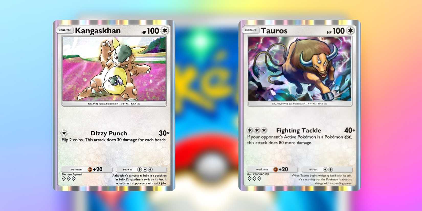 Afortunadamente, tener solo un Pokémon de cada tipo en el mazo, Vaporeon y Flareon, significará que esas Energías podrán generarse y podrán enfrentarse rápidamente a ataques aplastantes. Luego, tus Pokémon incoloros, Eevee, Kangaskhan y Tauros, todos capaces de asestar golpes masivos por sí mismos, podrán usar cualquiera de esas Energías.