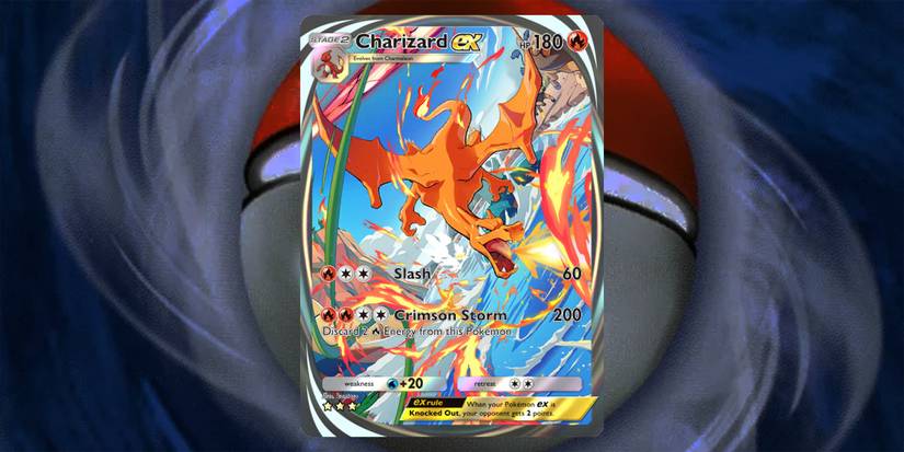 Esta tarjeta ex de Charizard ilustrada por kantaro muestra a Charizard en medio de una batalla Pokémon épica. La versión ampliada de esta obra de arte muestra docenas de Pokémon participando, muchos de los cuales disparan ataques épicos con rayos o energía.