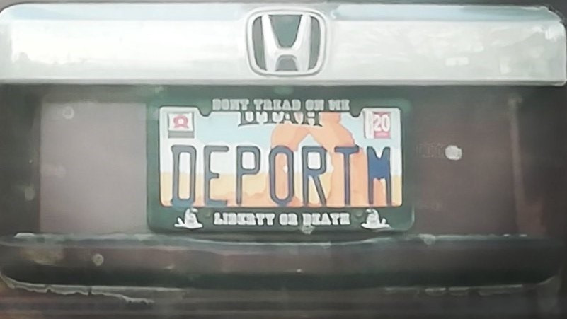 Una profesora de inglés que conducía hacia su casa luego de culminar su día de trabajo se topó con un auto que iba frente a ella con una placa con la frase en inglés que traduce “Depórtelos”, mensaje que para muchos es catalogado como ofensivo.