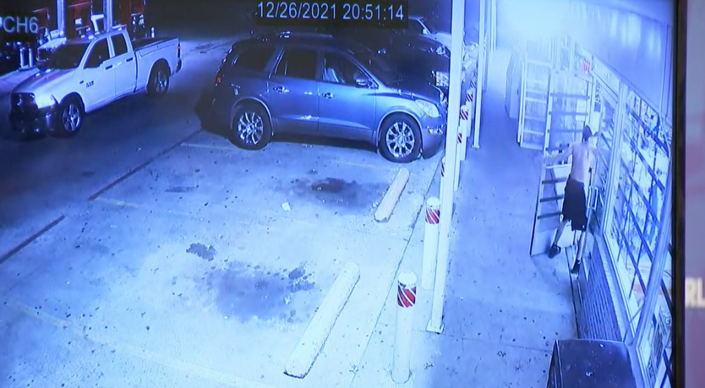 A través de las cámaras de vigilancia del negocio, investigadores notaron que un joven se bajó de un vehículo tipo pickup Dodge de color blanco, caminó cerca de la pared, abrió la puerta principal de la tienda y comenzó a disparar contra las víctimas.