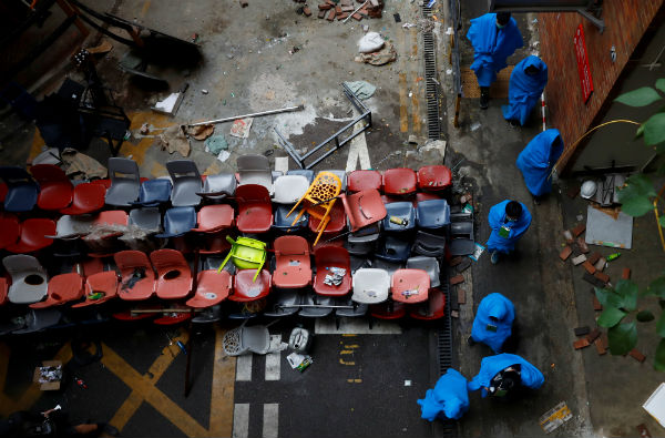 La policía de Hong Kong mantiene este martes sitiada a la Universidad Politécnica de Hong Kong, en cuyo interior siguen atrincherados un centenar de estudiantes contrarios al gobierno prochino.